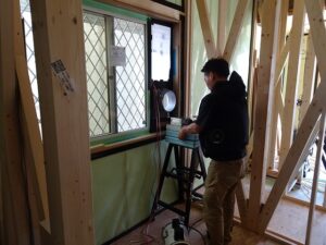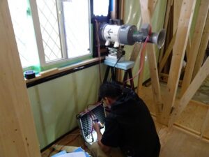 先日は新しいお宅の気密検査に立ち会ってきました。